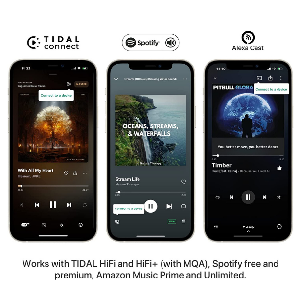 Spotify Connect, Tidal Connect, Alexa, Qobuz, DLNA,Airplay2