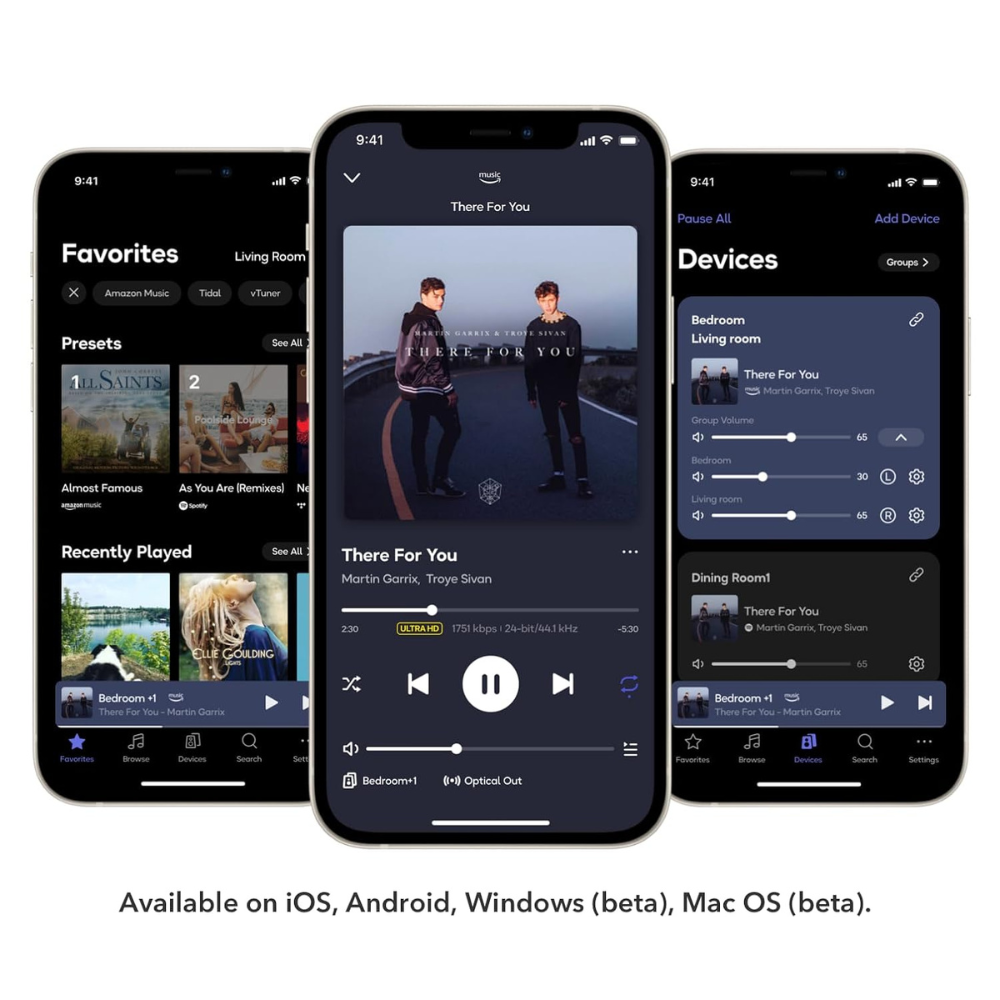 使用您的Roon, Spotify或TIDAL应用程序作為WiiM Pro的遙控器,並直接從這些服務中進行流媒體傳輸。WiiM Pro提供比傳統的藍牙或AirPlay 2接收器更高的音頻質量和更長的操作工作範圍,並讓您的移動設備可以執行其他任務。Spotify適用於Spotify免費和高級用戶。TIDAL適用於高保真和大師音質(MQA)
