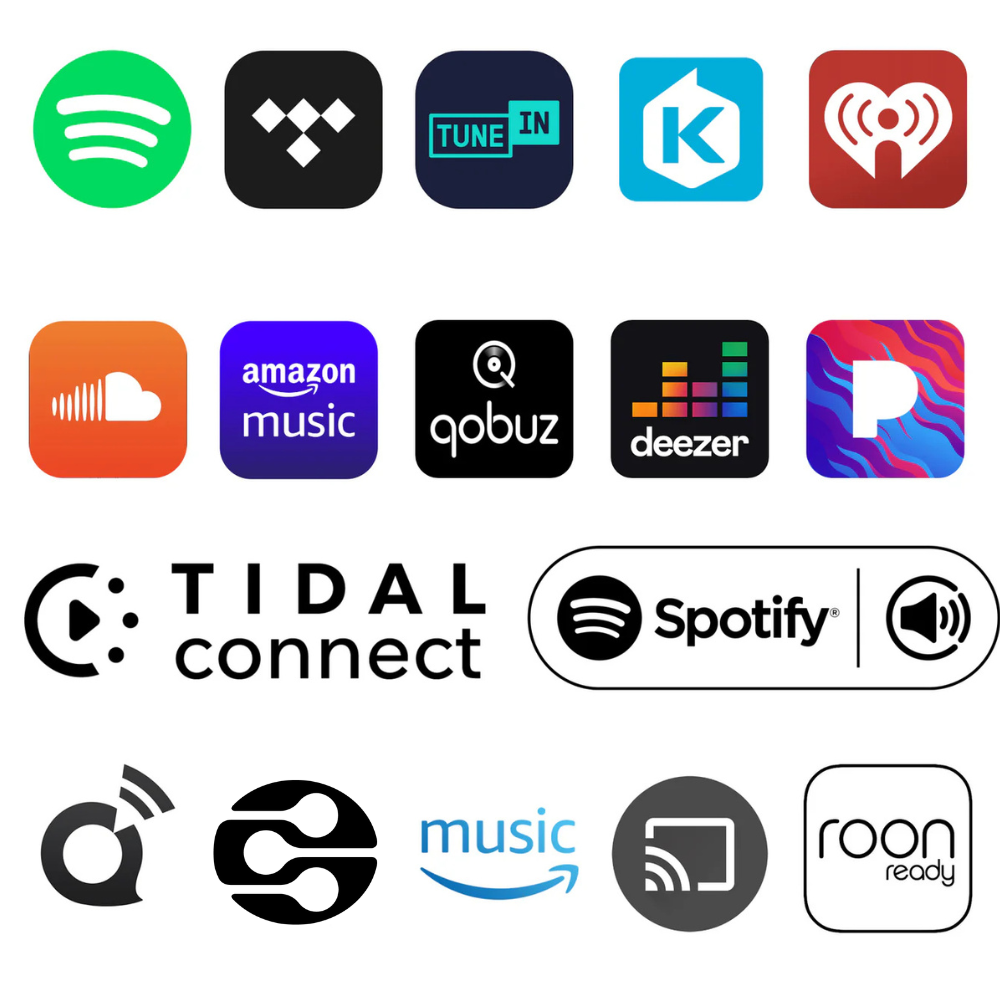 GoogleCast Audio, Spotify Connect, Tidal Connect, KKBOX, Alexa, Roon Ready, Qobuz, DLNA, Airplay2