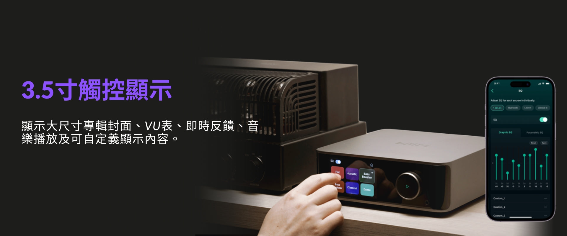Phono Stage 規格: 增益:41dB MM / 59dB MC MM:THD+N -75dB,SNR 76dB@5mV; MC: THD+N -58dB,SNR 56dB@0.5mV RIAA 精度: < ±0.5dB / 20Hz - 20kHz