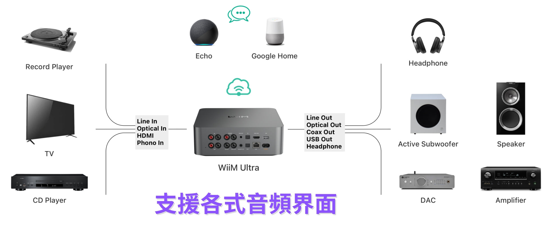 - Ultra不支援Airplay2 (可透過WiiM Mini光纖輸出至Ultra支援)